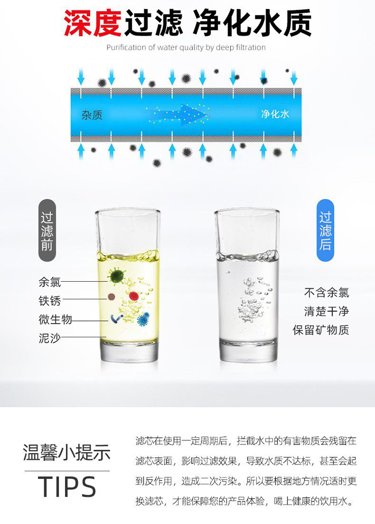 壓縮活性炭濾芯:以好的果殼炭及煤質(zhì)活性炭為原料,采用高科技技術(shù),經(jīng)特殊工藝加工而成,活性炭濾芯內(nèi)外均分別包裹著一層有過濾作用的無紡布,確保炭芯本身不會掉落炭粉,外層為塑料網(wǎng)套,使濾芯具有完整的外表與整潔的外觀。炭芯兩端裝有柔軟的橡膠密封墊,使炭芯裝入濾筒具有良好的密封性。成品活性炭濾芯均用塑料薄膜嚴密包封,防止濾芯被污染并保持濾芯經(jīng)常處于清新狀態(tài)。它集吸附、過濾、截獲、催化作用于一體,使用時不需添加助濾劑,也不需進行碳處理后的過濾。能基本去除水中的雜質(zhì)物、其他放射性物質(zhì),并有脫色、去除異味的功效。